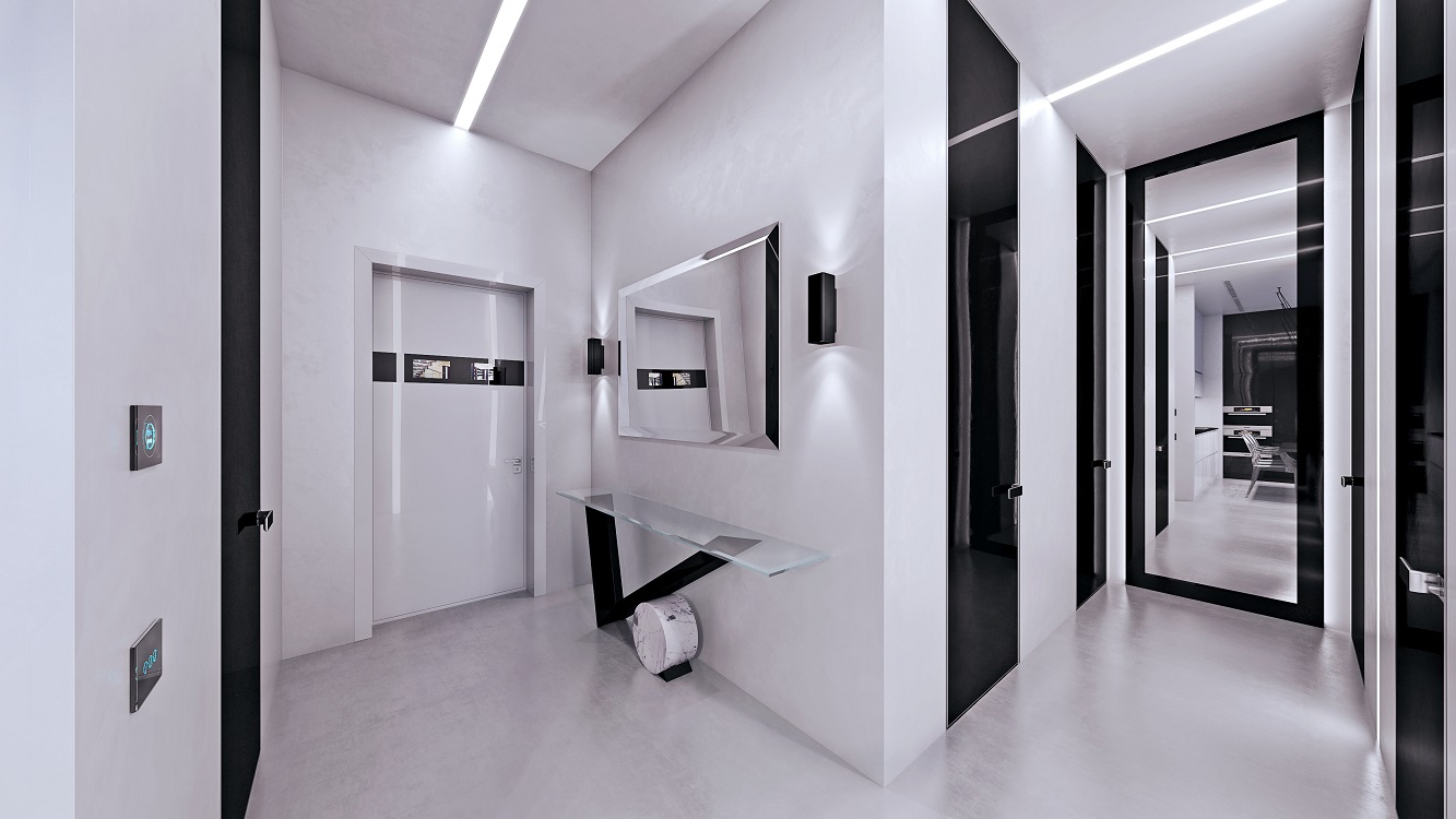 - Corridoio high-tech può essere decorato con modelli in vetro illuminato.Di recente, tali elementi sono piuttosto popolari.