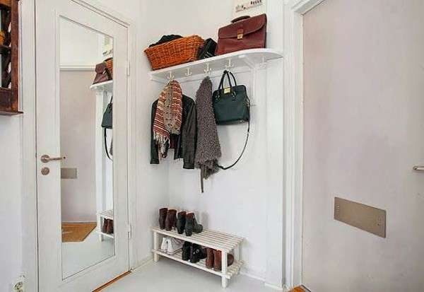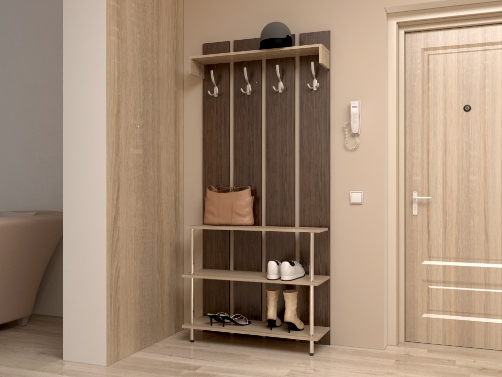 - Sospeso. Un tale appendiabiti con una scarpiera sembra molto più originale.