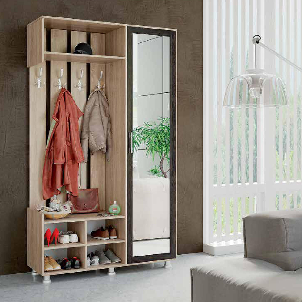 - La combinazione di una scarpiera e un appendiabiti è un'ottima soluzione, poiché il design è funzionale, ma allo stesso tempo non occupa troppo spazio libero nel corridoio.