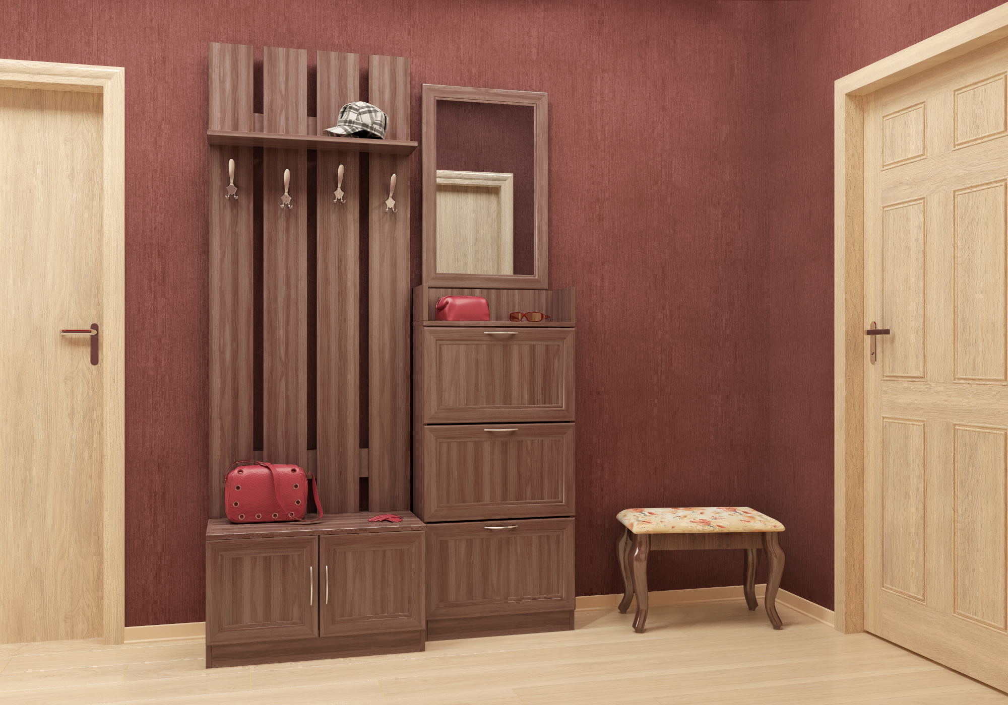 Appendiabiti con scarpiera in corridoio