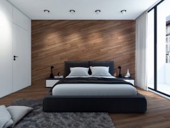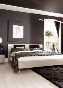 Vale la pena notare che il pavimento dovrebbe essere esattamente l'opposto del soffitto nel design affinché la camera da letto appaia spaziosa. Tuttavia, se i soffitti sono bassi, il pavimento con le pareti dovrebbe essere dello stesso colore.
