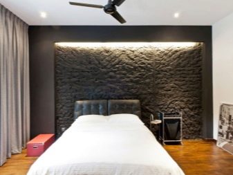 Per la decorazione della parete, puoi scegliere la modanatura dello stucco per enfatizzare la raffinatezza, ha anche senso considerare la pietra artificiale, che renderà sempre originale l'interno, alcuni prestano attenzione ai pannelli in legno wengé, che possono creare intimità. L'intonaco decorativo può essere utilizzato sulla testata del letto nella camera da letto.