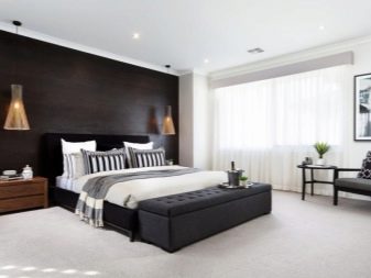 La regola più importante nella decorazione della parete è la superficie ideale, che può essere ottenuta con una buona riparazione. Esistono diverse opzioni per la finitura, quindi ce n'è almeno una che si adatta al tuo caso. Va notato che le pareti dipinte sono ancora rilevanti e molto richieste. Ma se ti piace qualcosa di diverso, potresti prendere in considerazione un'opzione per lo sfondo. La scelta del nero restringerà visivamente lo spazio, quindi dovrebbe essere scelto esclusivamente per le camere da letto di grandi dimensioni.