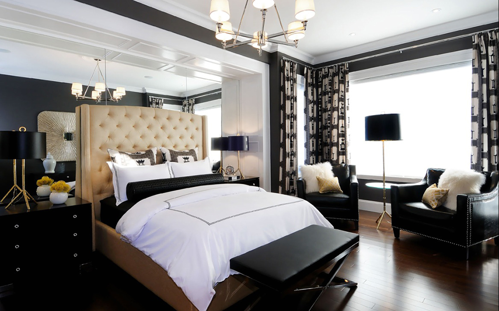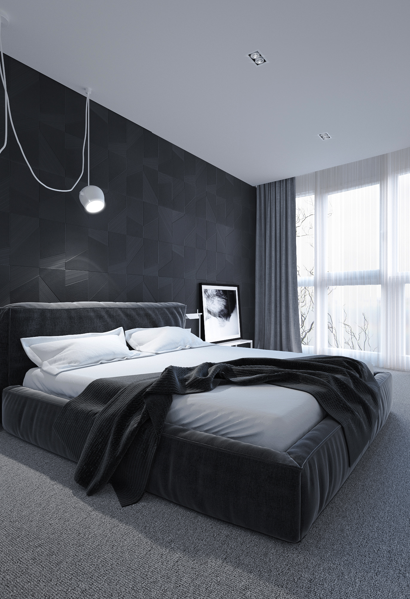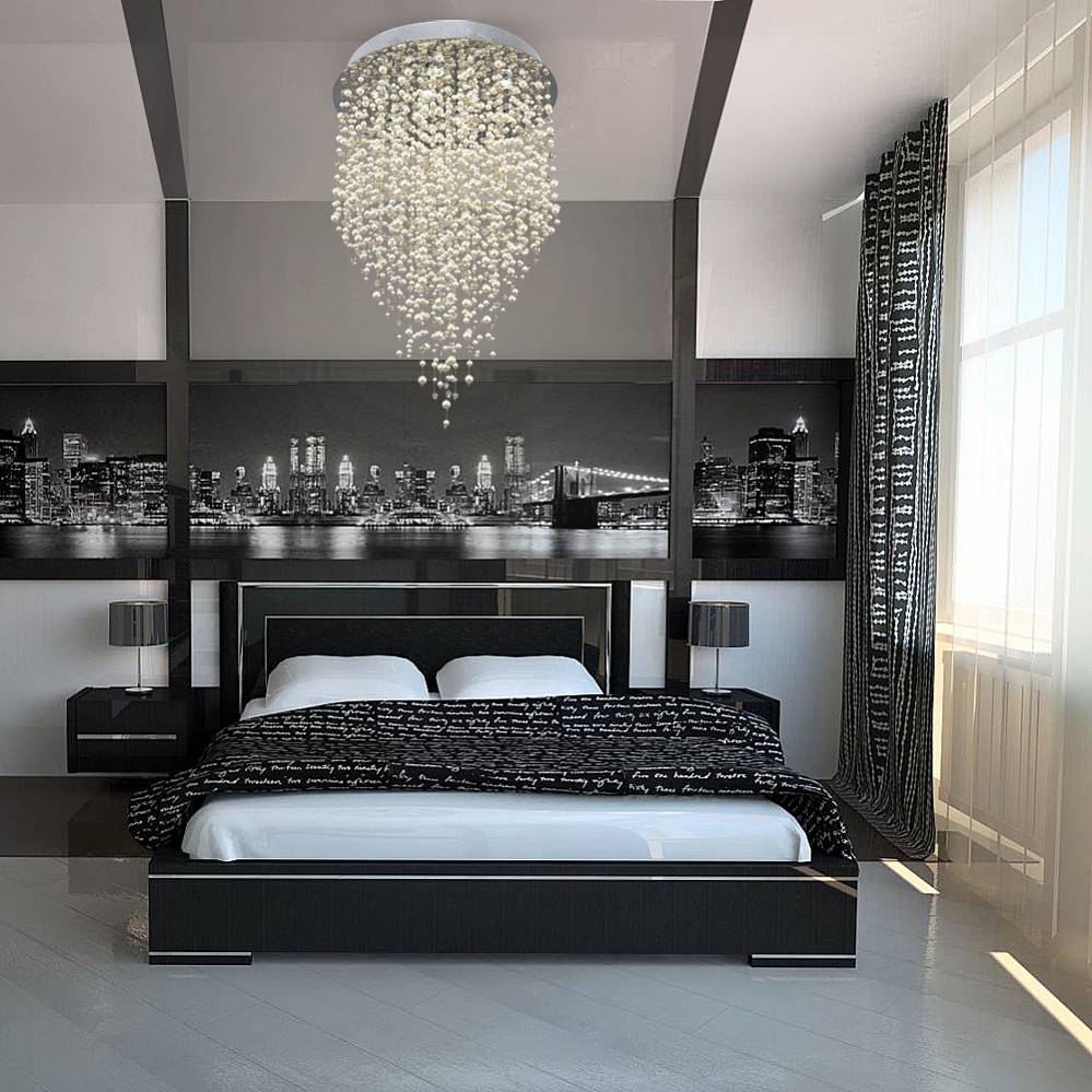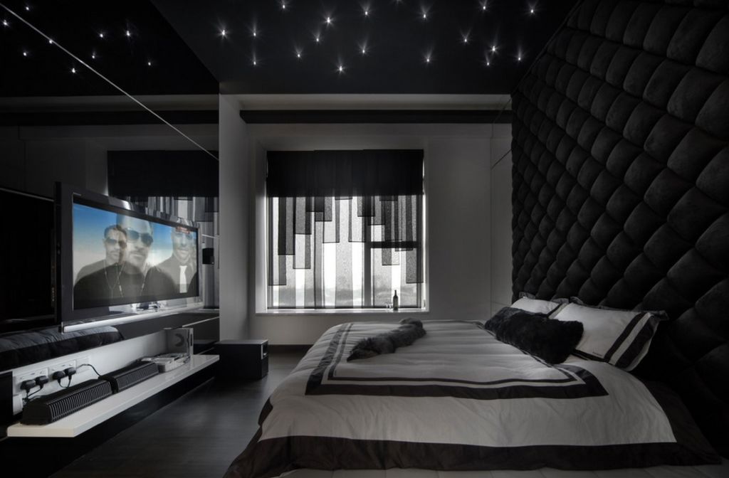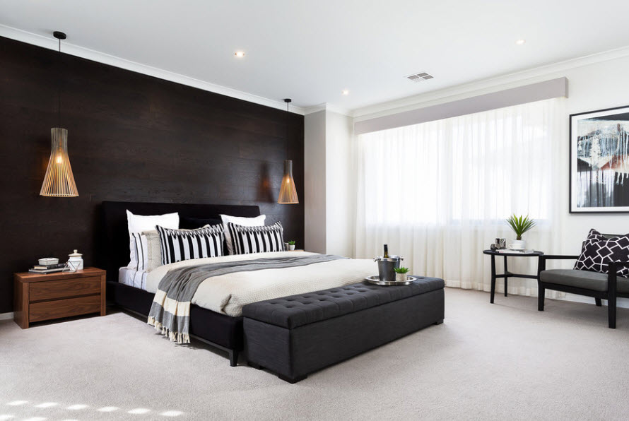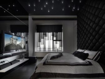 - a causa della presenza del nero nella camera da letto, dovrai usare molta illuminazione, inoltre, è importante posizionare gli elettrodomestici in modo che tutto appaia armonioso;
