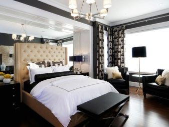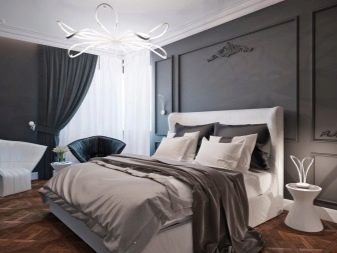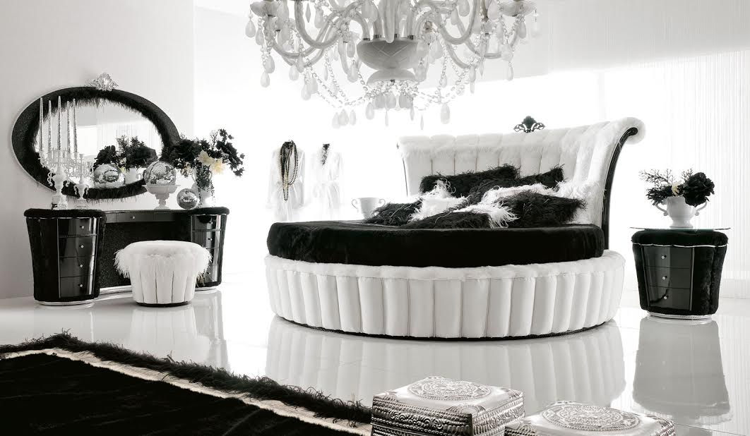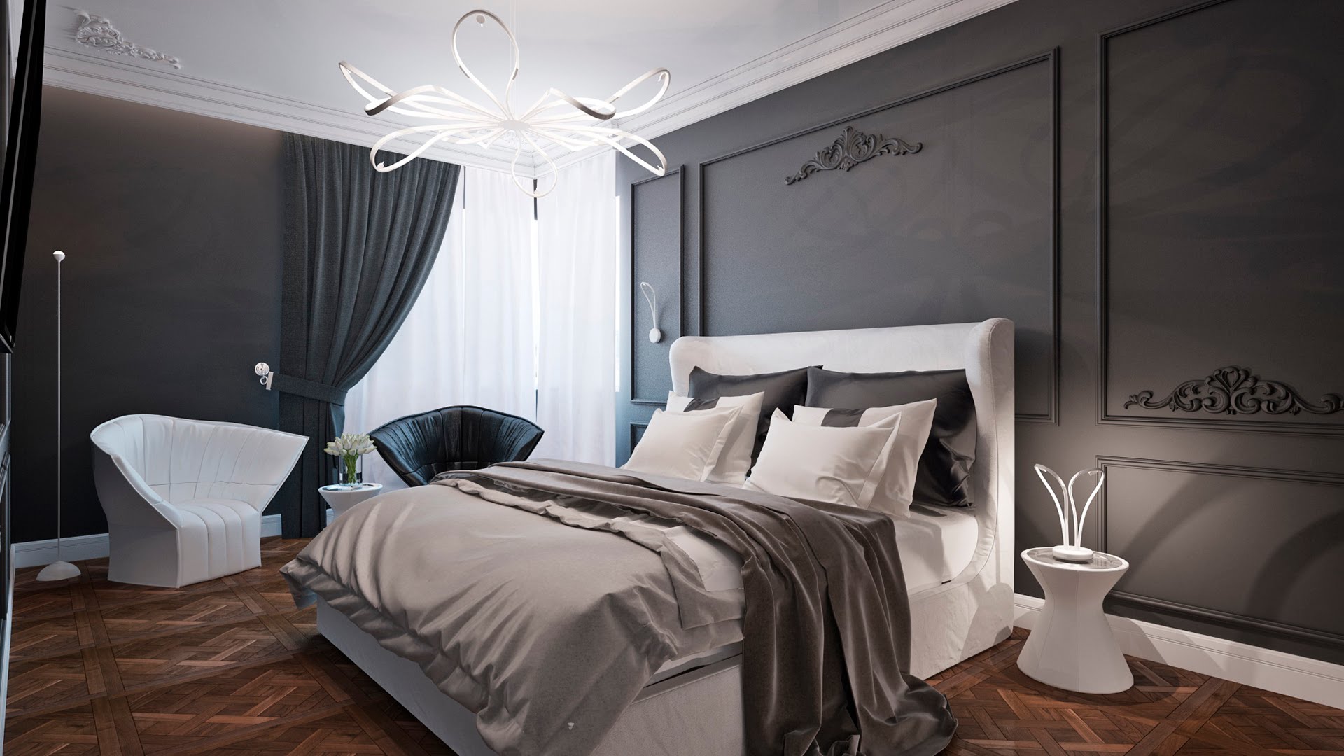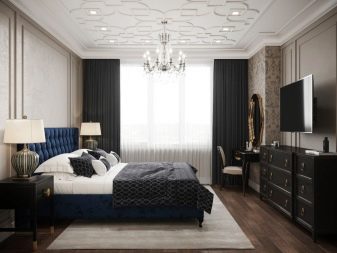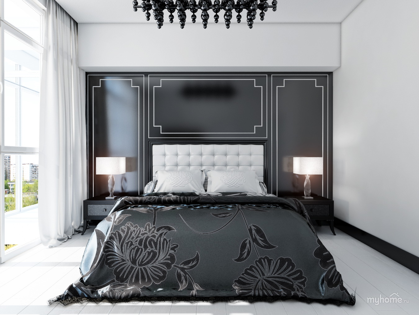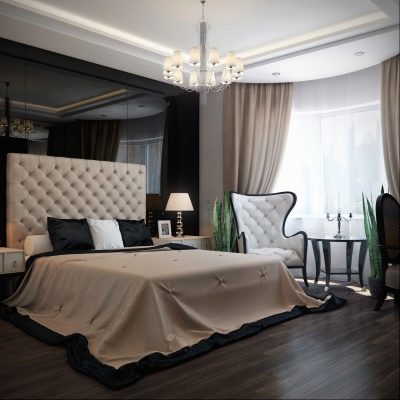 - I temi in bianco e nero sono grandiosi neoclassici, che è caratterizzato da mobili antichi e moderne tecnologie di costruzione, di conseguenza, l'interno sembra lussuoso. La camera da letto dovrebbe avere tende pesanti, se possibile, colonne decorative e un lampadario decorato. Come rivestimento per pavimenti, è meglio scegliere il parquet su cui giace con noncuranza un tappeto di pelliccia di animale. In questo stile, devono essere seguite alcune regole. Utilizzare solo materiali naturali come pelle, legno, pietra. La porta può essere realizzata sotto forma di arco, per l'illuminazione, scegli un lampadario a più livelli con doratura. Se la camera da letto ha soffitti alti, devono essere decorati con stucchi. Per un tale interno, i mobili intarsiati intagliati sono l'ideale. Scegli un letto con testiera alta. Puoi appendere applique in stile candelabro alle pareti e posizionare un vaso antico o una statua di marmo vicino alla poltrona.