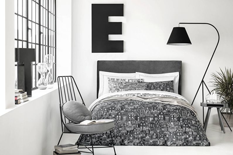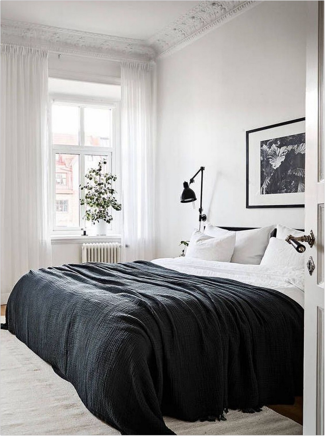 - Non sovraccaricare l'esperienza visiva della camera da letto; per le stampe in bianco e nero a contrasto, scegli tappezzeria o tende.