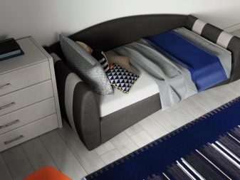 Risparmio di spazio di fondamentale importanza per le camerette piccole. Se ci sono pochi metri quadrati, un divano piegato occuperà molto meno spazio durante il giorno rispetto a un letto enorme.