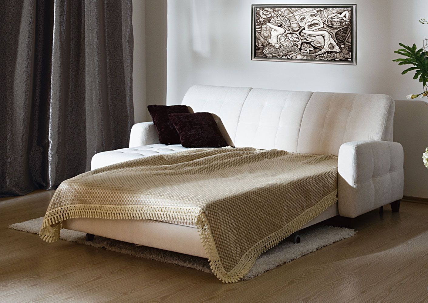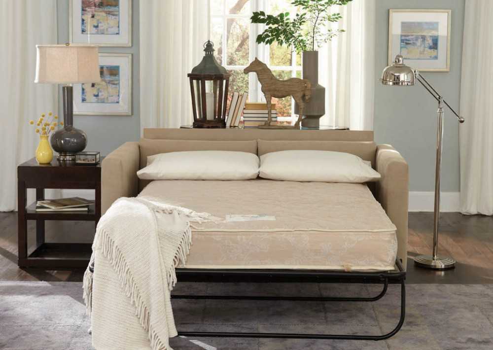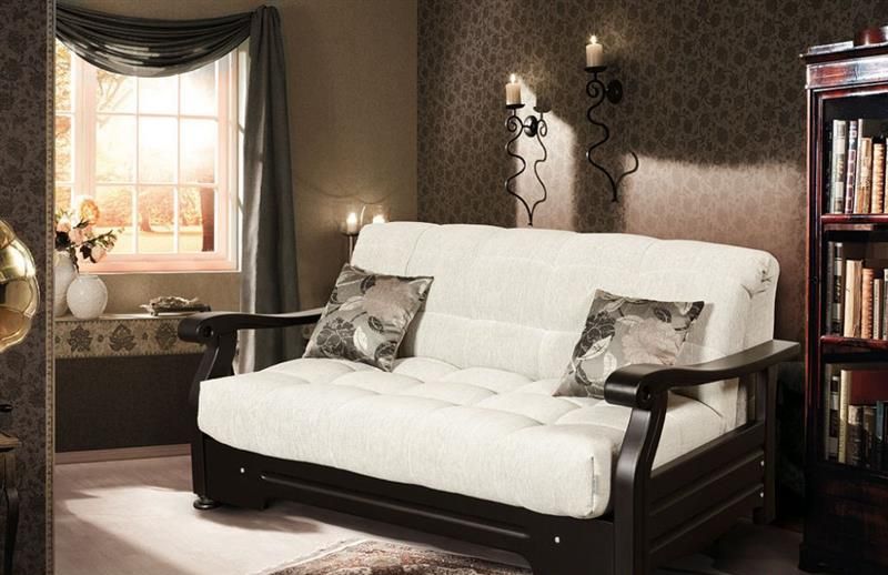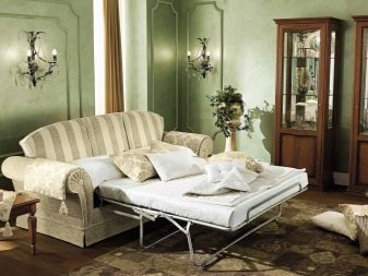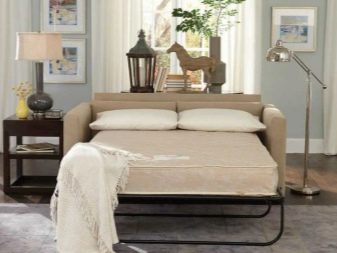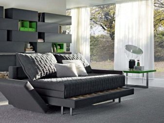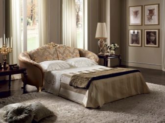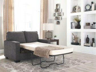 Disponibilità. I divani pieghevoli per la camera da letto possono essere trovati in qualsiasi negozio di mobili e una vasta gamma di design ti consentirà di scegliere la soluzione giusta per qualsiasi interno.