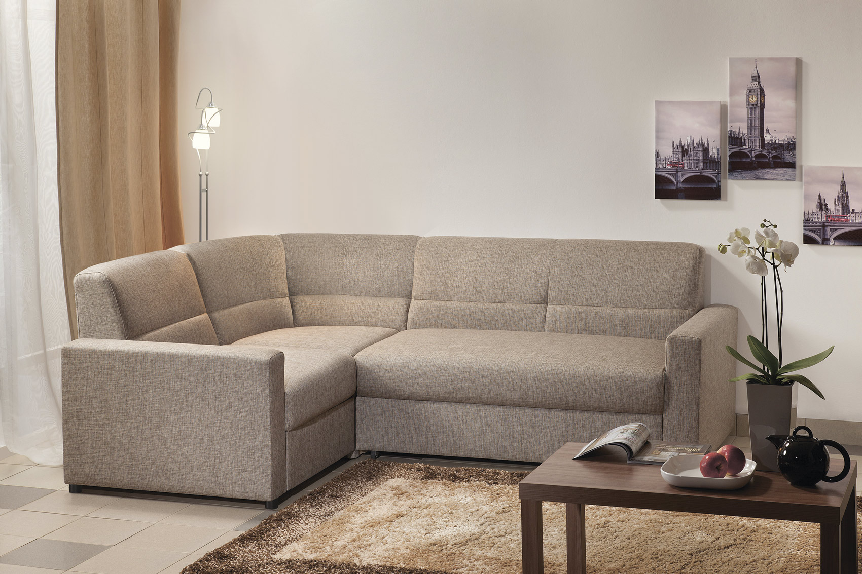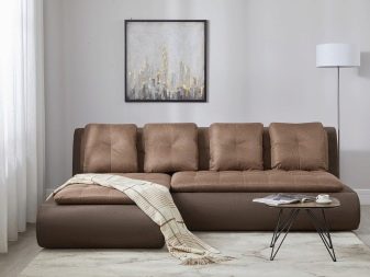 Oltretutto, le opzioni d'angolo sono molto popolari, che ti consentono di utilizzare ogni millimetro di spazio libero nel modo più efficiente possibile. L'unico inconveniente è che non possono essere utilizzati in ogni stanza. Ad esempio, se c'è una nicchia nella camera da letto, non funzionerà per installare un divano ad angolo lì a causa delle sue caratteristiche di design.