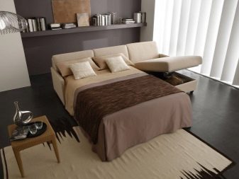 Facilità d'uso. Puoi trasformare un divano in un posto letto con un movimento, che distingue favorevolmente tali modelli dal resto dei mobili.