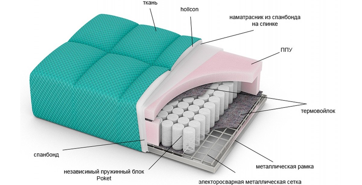 Holofiber e lattice sono considerati il riempimento più adatto, ma il corpo è meglio scelto tra materiali naturali. Se il telaio è in compensato, non sarà in grado di sopportare carichi per lungo tempo, il che porterà a un guasto del meccanismo.