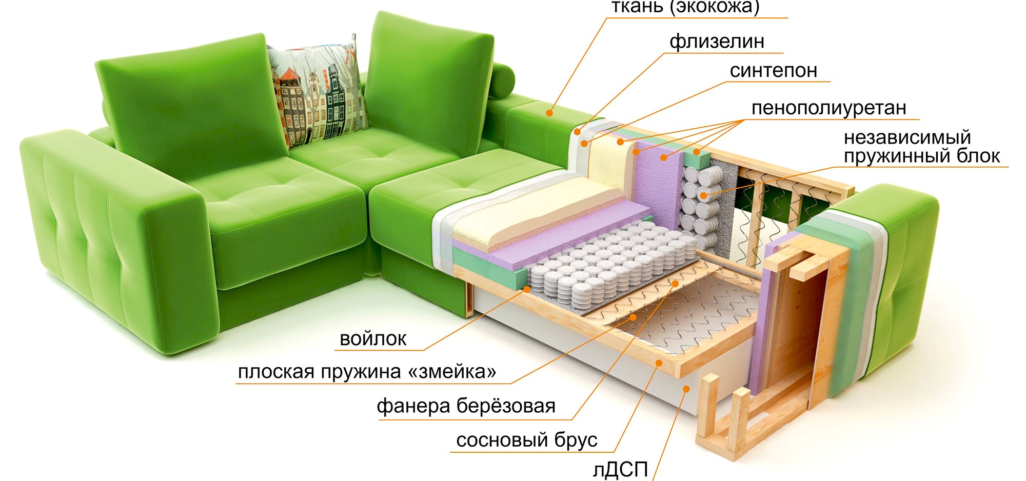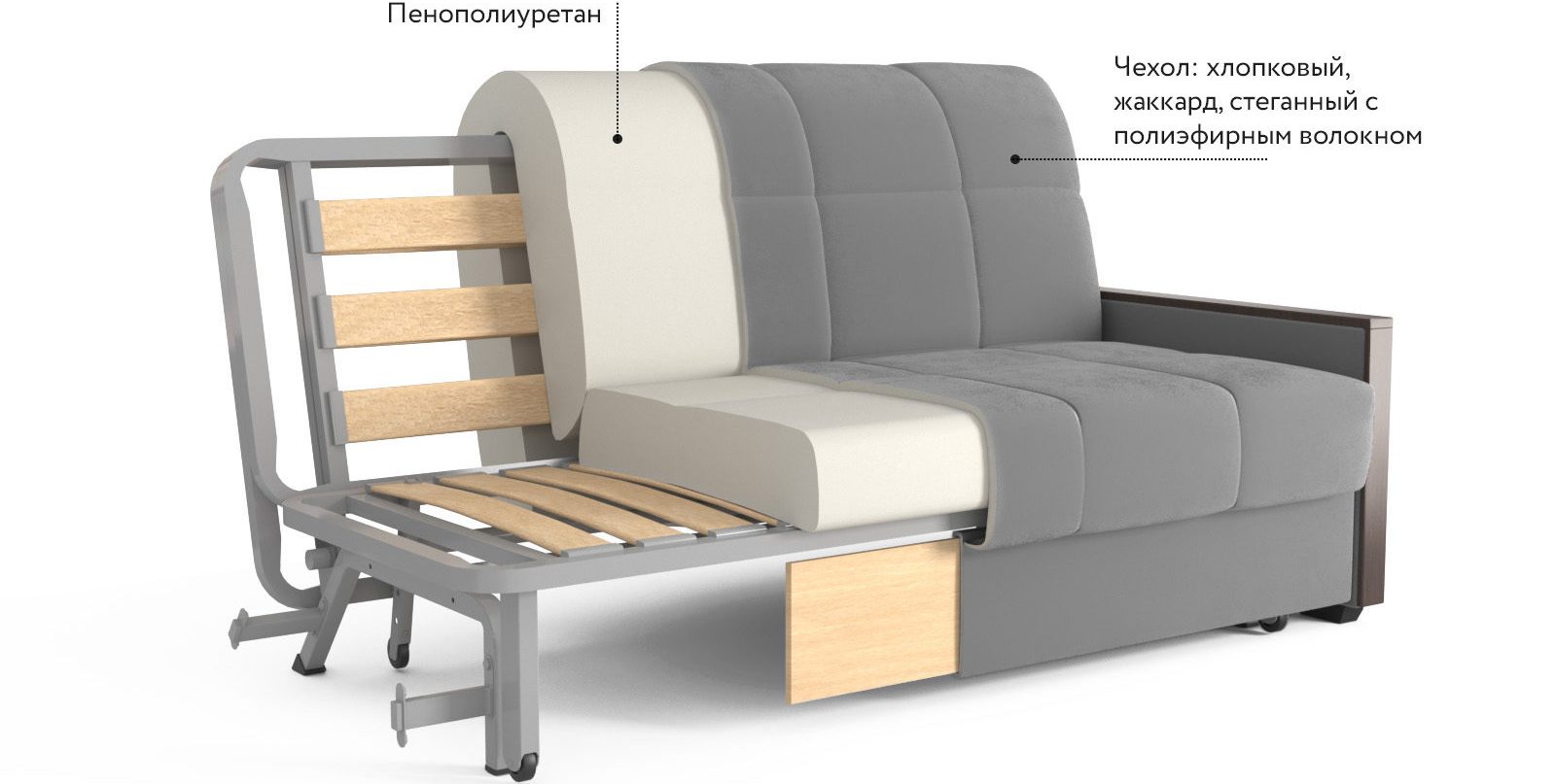 Elevata qualità costruttiva, che influisce direttamente sulla durata. Il divano della camera da letto si apre e si chiude quasi ogni giorno, quindi deve far fronte a tali carichi.