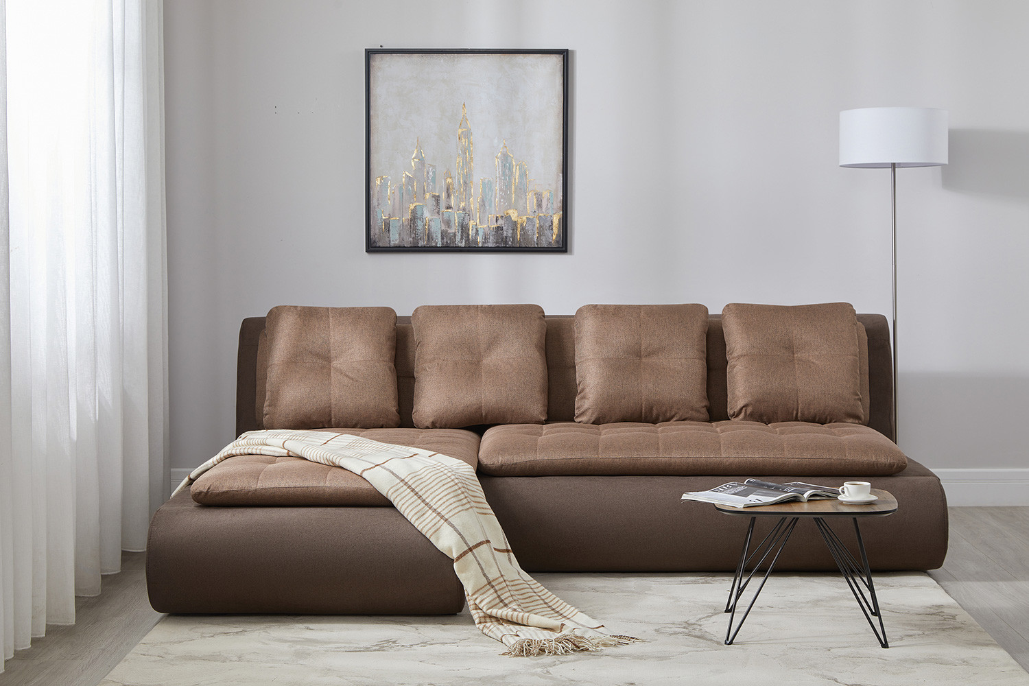 La testa del divano è posizionata al meglio contro un muro in quanto ciò offre comfort e protezione. Inoltre, grazie a questa tecnica, è facile combinare questi mobili con altri oggetti interni.