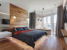 Quasi secondo lo stesso principio, cercano un posto per un letto. Non è consigliabile metterlo di fronte alla porta. Il posto migliore per un letto è sulla parete a lato della finestra. La cosa principale è che non è adiacente al bagno.
