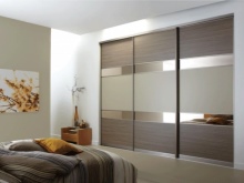 Occupa meno spazio e sembra molto più attraente. Un'ottima opzione per una camera da letto moderna sono i mobili con un'anta a specchio o un'anta decorata con un motivo originale.