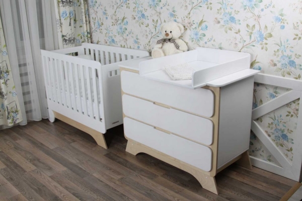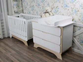 Oltre agli armadietti, puoi anche usare cassettiere per riporre le cose. Soprattutto, questi mobili si adattano all'ambiente delle camerette dei bambini. Le cassettiere in esse sono installate accanto al fasciatoio o alla culla. Ciò semplifica il processo di cambio dei vestiti del bambino, perché tutto ciò di cui hai bisogno è sempre a portata di mano.