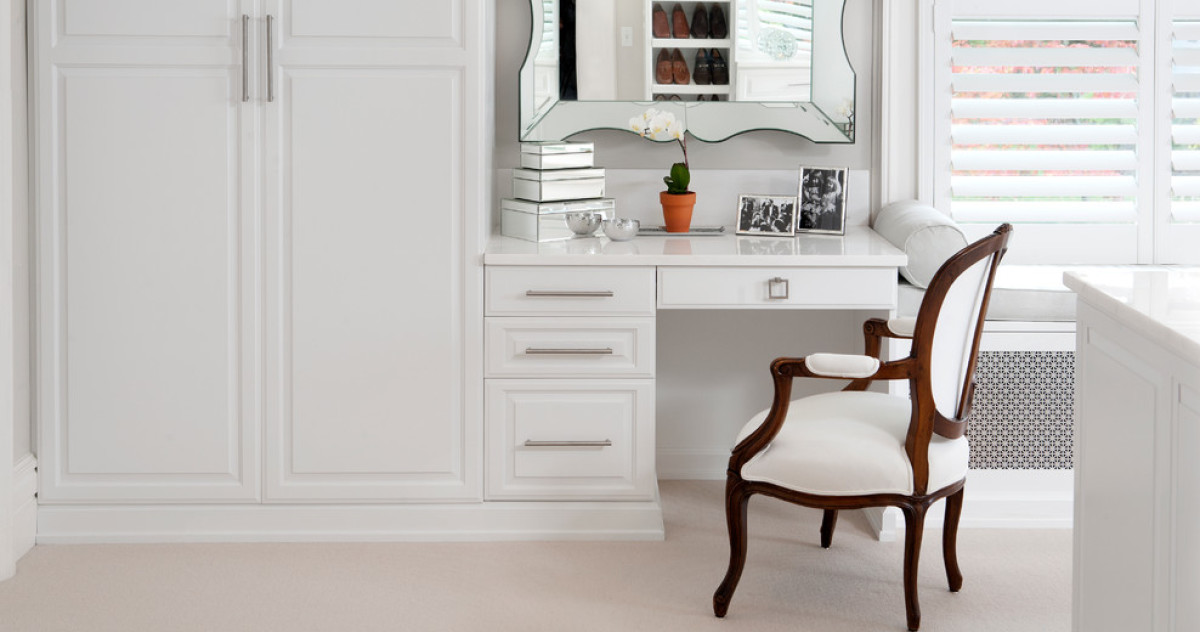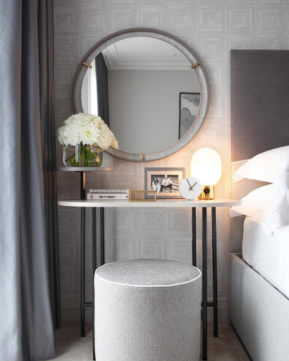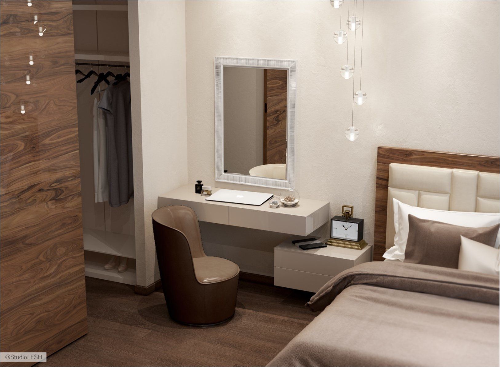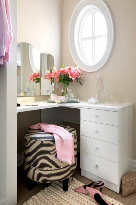 Quando si organizza una camera da letto, vale anche la pena allocare spazio per una piccola toletta. Scegliendo il posto più adatto per lui, dovresti prestare attenzione alla posizione delle finestre. Se la persona che utilizzerà la toletta è destrorsa, deve essere installata in modo che la luce cada dal lato sinistro e viceversa. Se possibile, accanto ad essa dovrebbero essere posizionate piccole lampade.