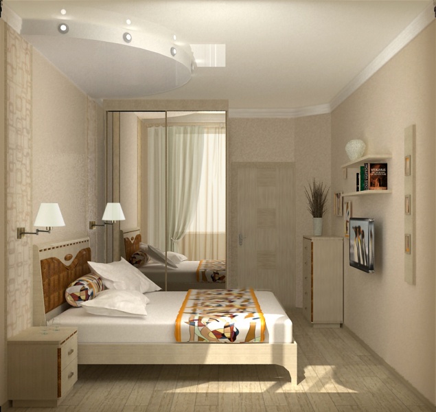 Letti matrimoniali deve essere posizionato in modo tale che il posto letto possa essere facilmente avvicinato da entrambi i lati... Allo stesso tempo, dovrebbe esserci abbastanza spazio libero tra esso e altri mobili. I letti singoli, invece, vengono spinti con il fianco contro il muro. In questo modo occupano meno spazio libero.