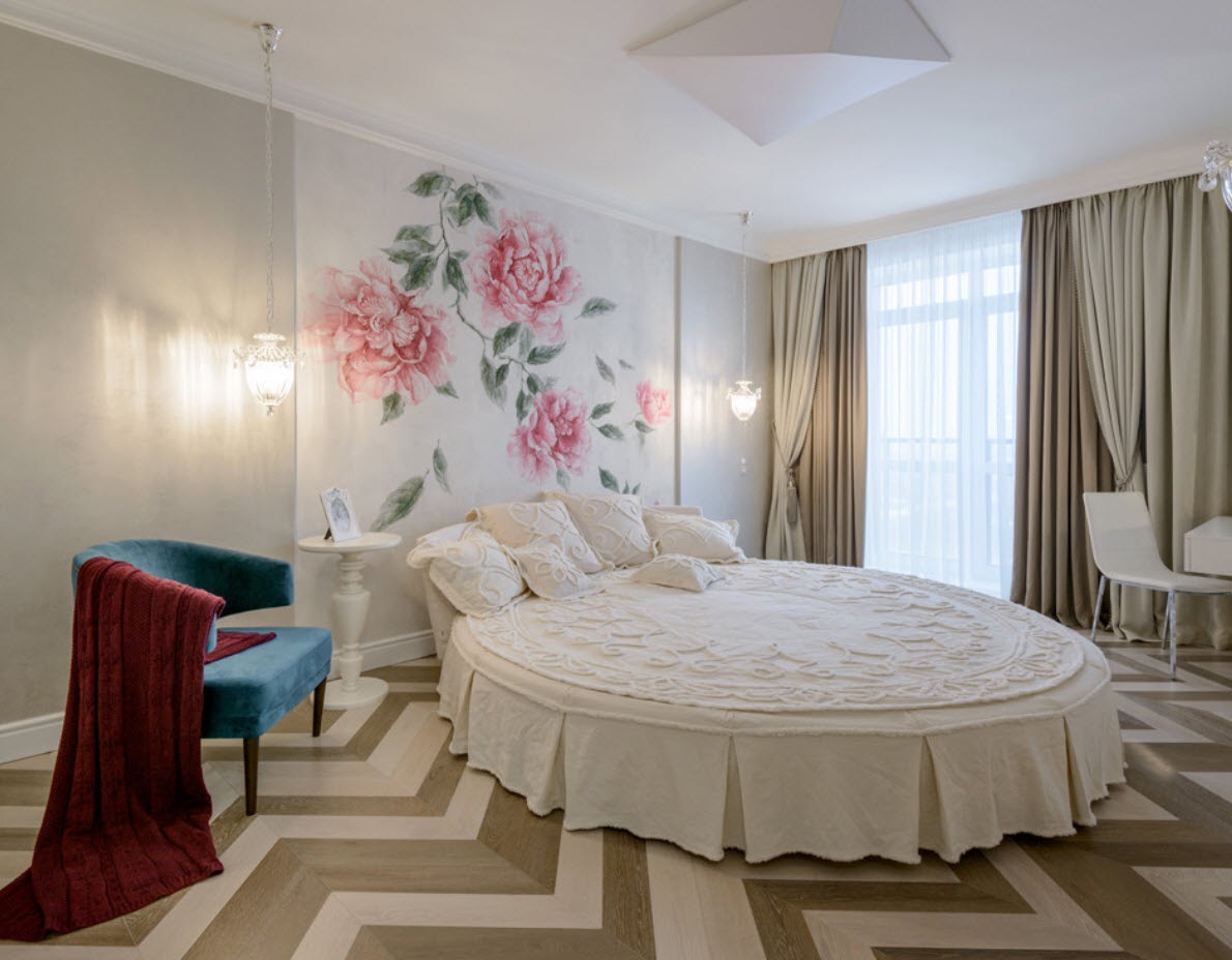 Per rendere favorevole l'atmosfera nella camera da letto, vale la pena usare oggetti con angoli arrotondati per decorarla.