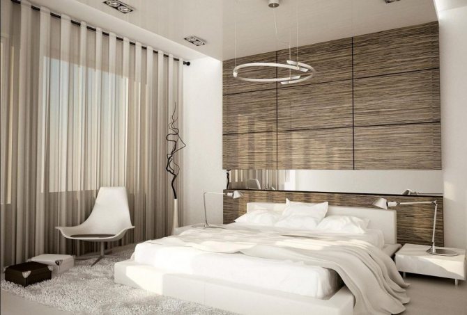 - Non dovrebbe riflettere il dormiente... Pertanto, molto spesso lo specchio è posizionato sul muro a lato del letto.