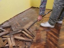 Smantellamento di vecchi rivestimenti, comunicazioni e cablaggi. Particolare attenzione in questo processo deve essere prestata alla rimozione del rivestimento del pavimento e al suo livellamento, grazie al quale è possibile rendere la stanza il più liscia e attraente possibile.