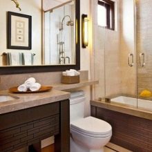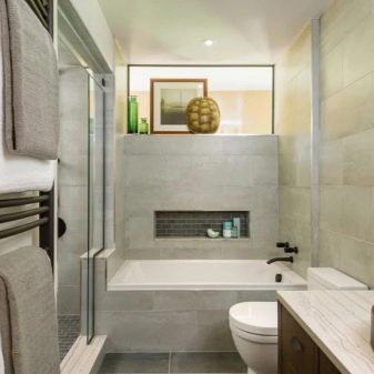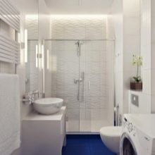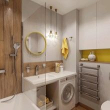 Nel processo di scelta dei mobili, è necessario prestare particolare attenzione al bagno, che è spesso caratterizzato dalle sue piccole dimensioni in "Krusciov". È meglio dare la preferenza a una cabina doccia, che ti permetterà di allocare spazio per una lavatrice e vari altri mobili.