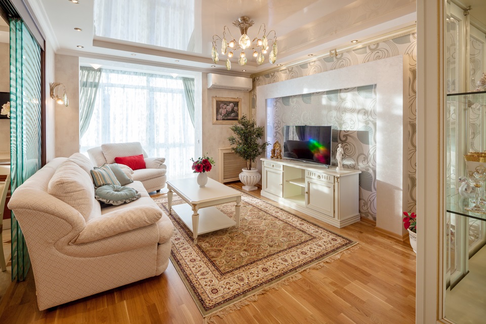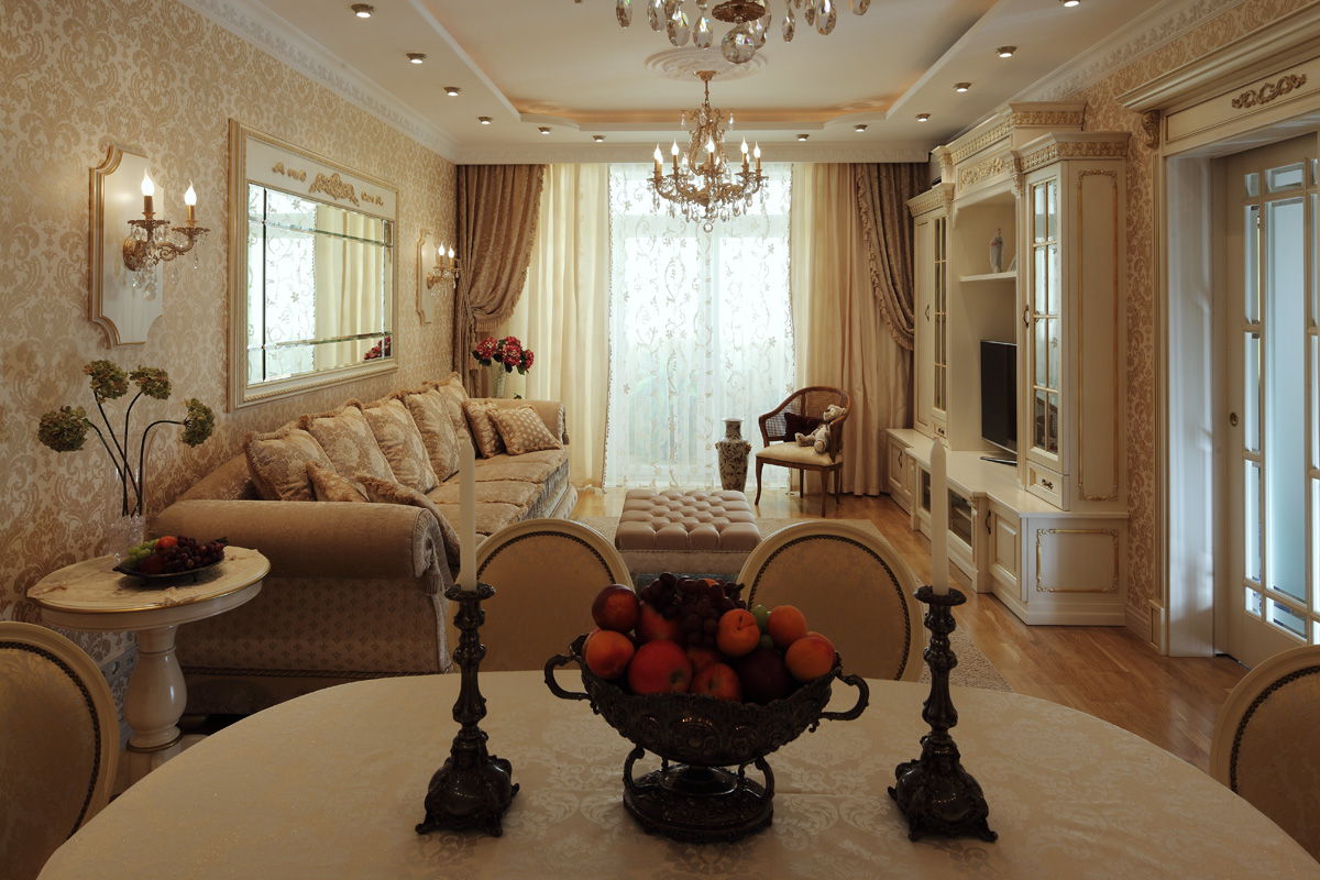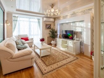 Classico. La caratteristica principale di questa direzione è che dovrebbero esserci sempre forme geometriche chiare e simmetria. Sono ammessi solo pochi colori, gli accessori devono essere espressivi. Spesso l'elemento principale degli interni, che è decorato in questa direzione stilistica, è un lampadario. Se la stanza non può vantare soffitti alti, l'uso di un'illuminazione speciale sarà una soluzione eccellente. L'interno, decorato in stile classico, si distingue per la presenza di mobili pesanti e altri oggetti simili.