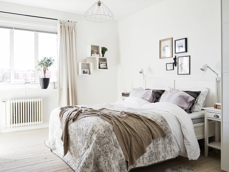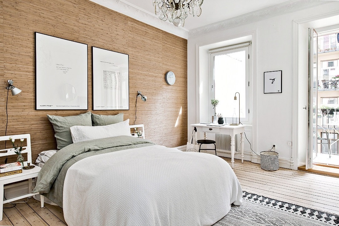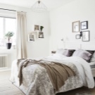 - Scandinavo. La finitura chiara non contraddice l'essenza stessa della camera da letto. Inoltre, lo stile scandinavo non è uguale al "bianco solido", è un po' una rappresentazione stereotipata. Piuttosto, il colore bianco si riferisce allo stile nordico. Stile scandinavo molto accogliente, tranquillo e libero. Tutto in esso è semplice, laconico, c'è un posto solo per le tue cose preferite, al di fuori dei piaceri della moda moderna. Inoltre, non a tutti piace dormire in una stanza buia, può sembrare soffocante, senza aria.