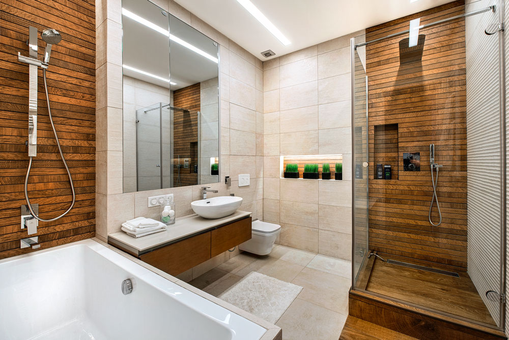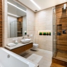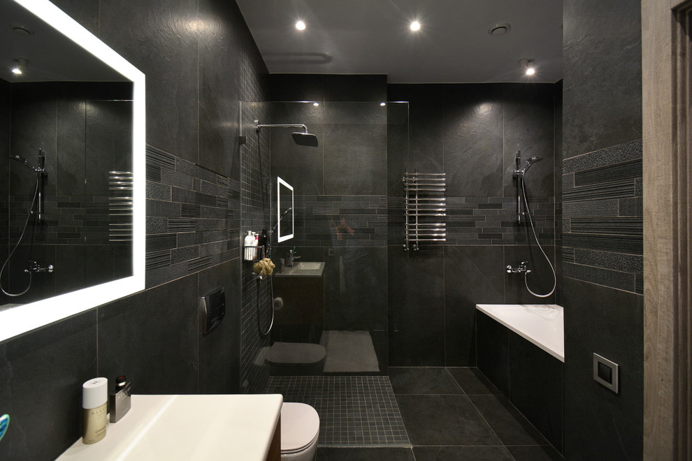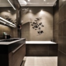 Per quanto riguarda il design, un design relativamente inaspettato si trova sempre più attivamente. Le piante viventi compaiono nel bagno, spesso non vengono utilizzate solo piastrelle simili al legno, ma anche il legno, appositamente lavorato, viene spesso utilizzato nella decorazione. I colori scuri, che in precedenza sembravano essere tabù in bagno, improvvisamente ottengono molte opzioni interessanti per la decorazione - e una stanza privata noir sembra essere il posto migliore per organizzare una spa domestica.