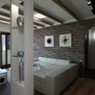 In un nuovo edificio, un bagno si trova spesso accanto a una piccola stanza, in cui è più spesso attrezzata una camera da letto. Nella stessa versione, è necessario decidere quale sarà il centro del layout. Anche il filmato degli appartamenti nei nuovi edifici è un grande divario: da 65 a 100 mq. m, di regola. Ciò significa che la stessa camera da letto di una piccola stanza può essere trasferita nello spazio che si forma spostando il corridoio (ma stiamo parlando di riqualificazione).