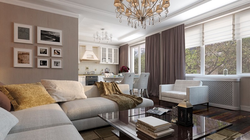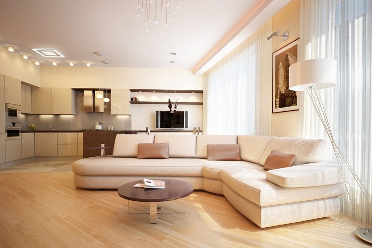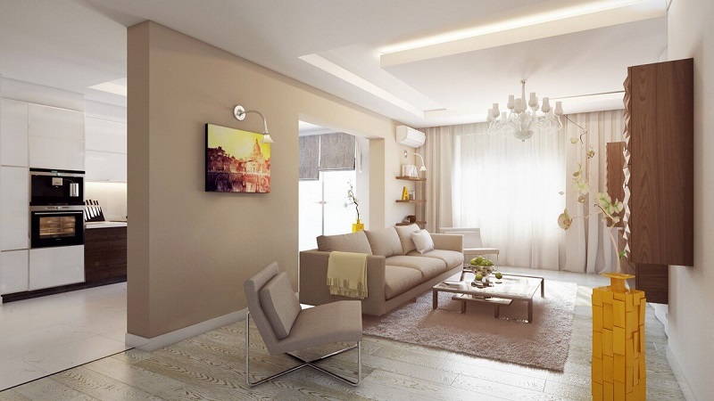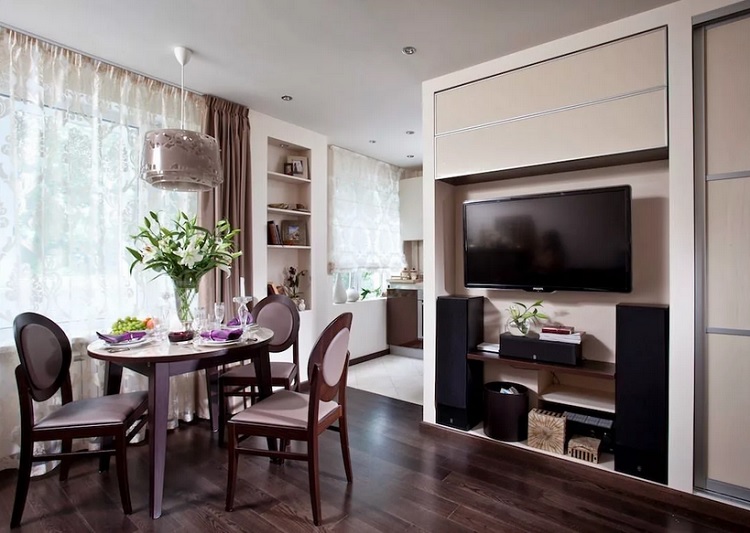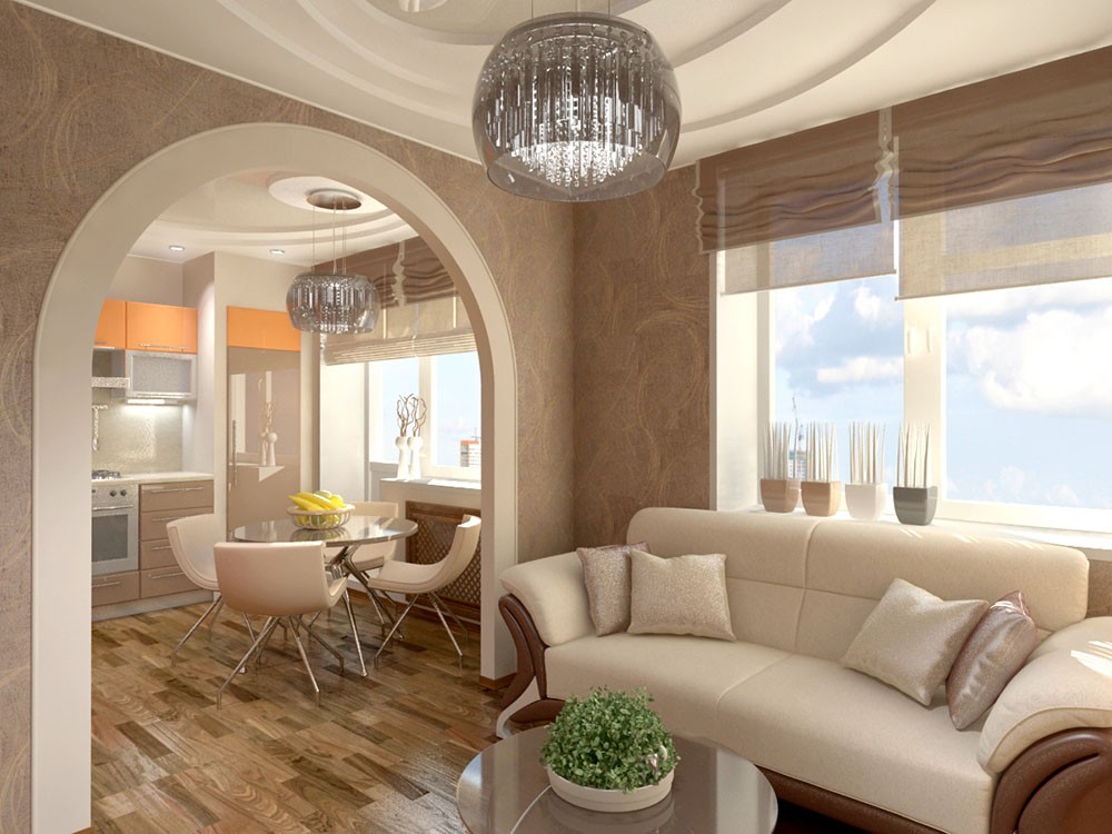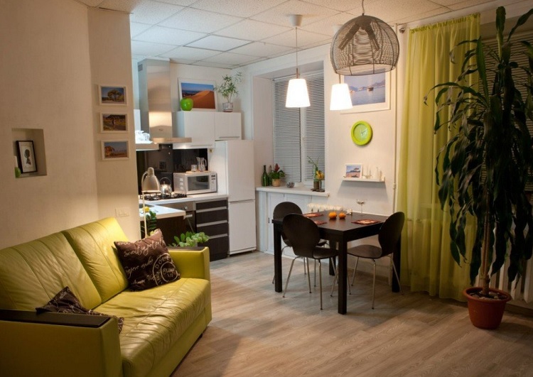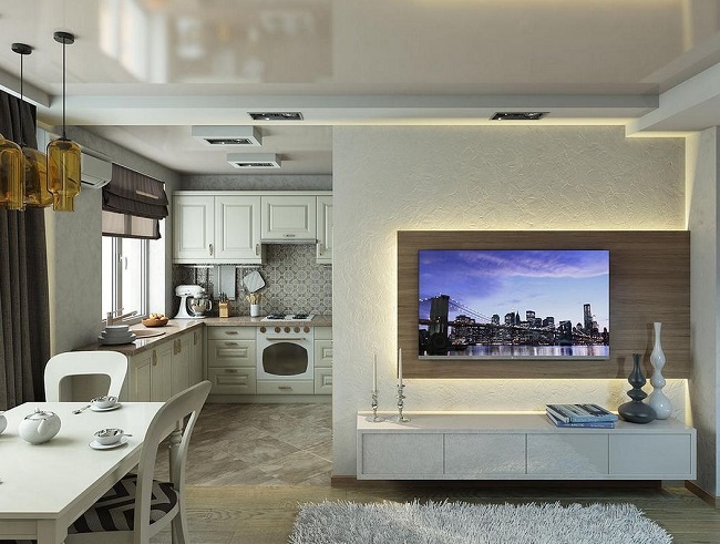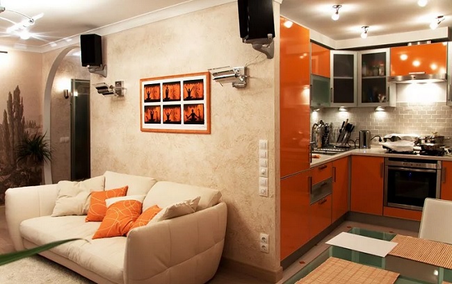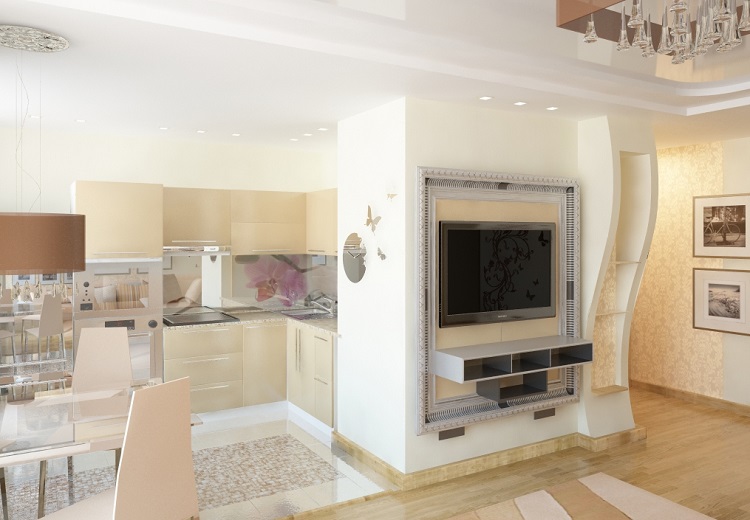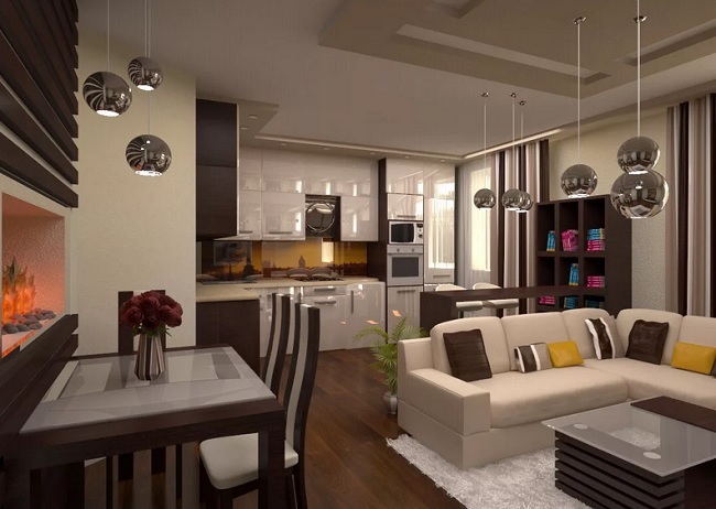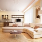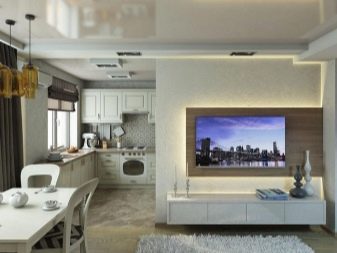 Se si decide di combinare gli spazi della cucina e del soggiorno, la stanza dovrebbe essere omogenea, stilisticamente organica e il più comoda possibile. Di norma, coloro che decidono di organizzare uno spazio ampio, arioso e libero nell'appartamento vanno all'unificazione. Questo è un luogo dove l'intera famiglia può riunirsi senza esitazione. Qualcuno sta cucinando, qualcuno si sta rilassando davanti alla TV, qualcuno sta giocando a giochi da tavolo, ecc. Tutti sono in vista, tutti comunicano, e questo non ha prezzo per la famiglia.
