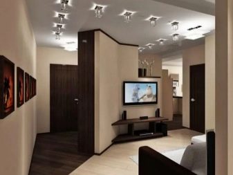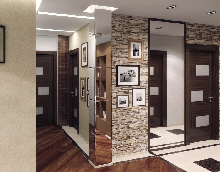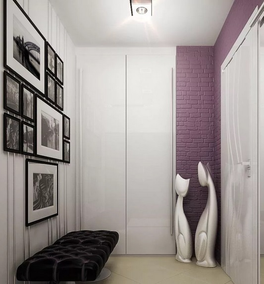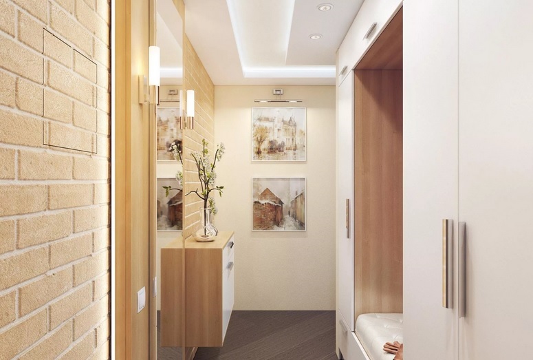 Attrezzare un corridoio non significa sempre farne qualcosa, rendendo funzionale ogni metro. Può rimanere leggero e vuoto, a meno che i quadri alle pareti non gli aggiungano atmosfera. Oppure puoi mettere lì una console allungata, ma stretta, su cui verrà posizionato l'arredamento stagionale. Puoi specchiare una delle pareti del corridoio, non completamente, ma in modo significativo. E se organizzi un'illuminazione di alta qualità per gli specchi, l'intera metà femminile della famiglia adorerà questo posto.