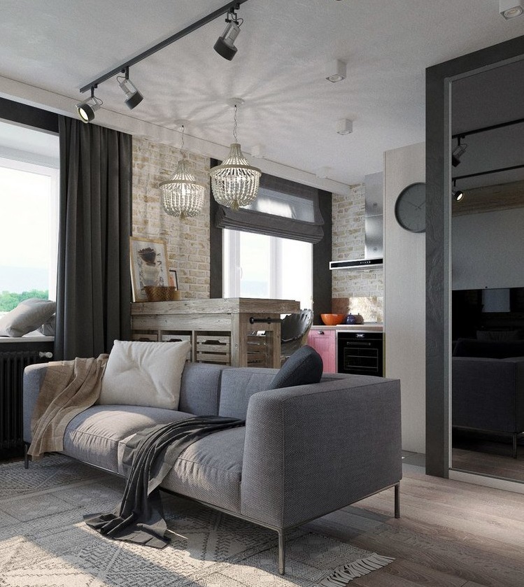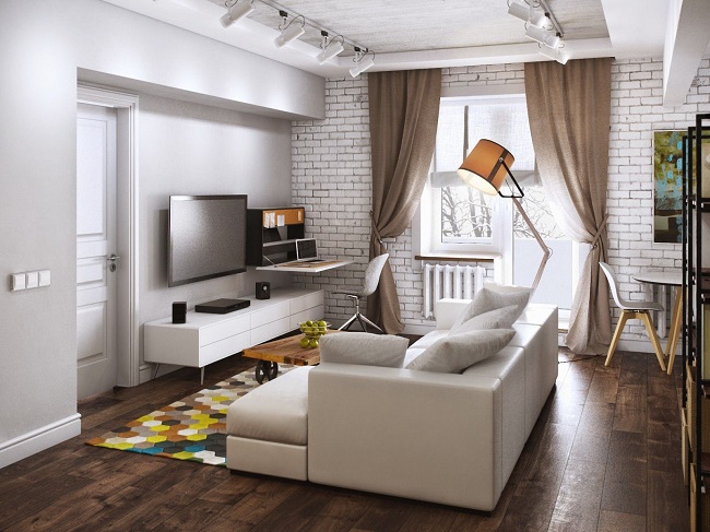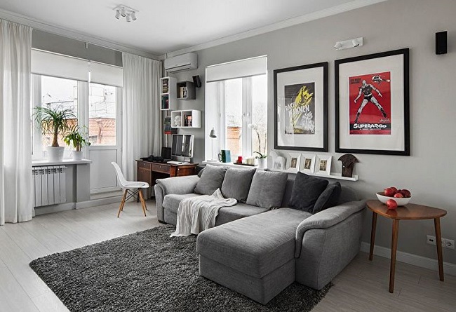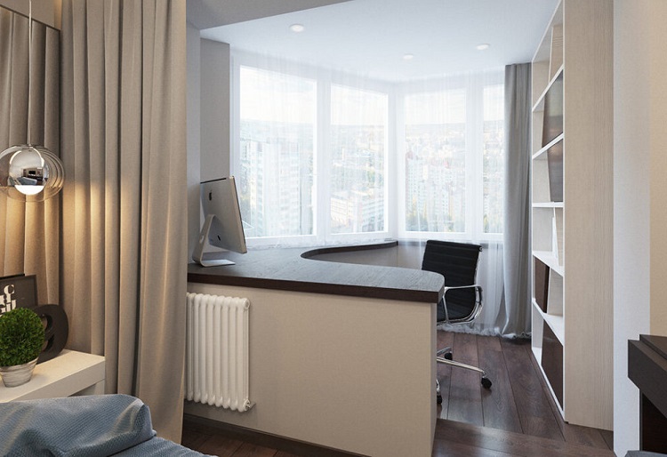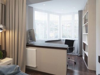 E se questo è un nuovo edificio con due balconi, la zona giorno può essere ampliata grazie a questi elementi, attaccandoli alla stanza, dopo averli precedentemente isolati. Logge e balconi sono diventati più spaziosi, il che significa che puoi pensare al loro uso razionale (ufficio, mini-officina, ecc.)