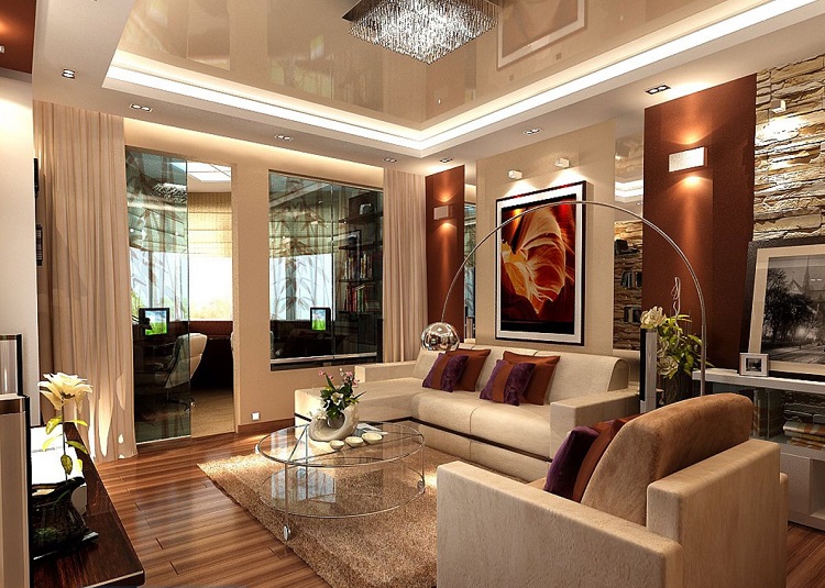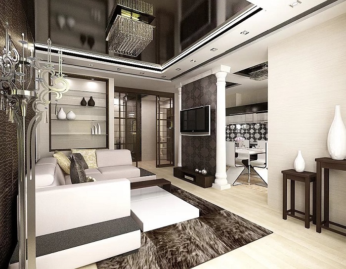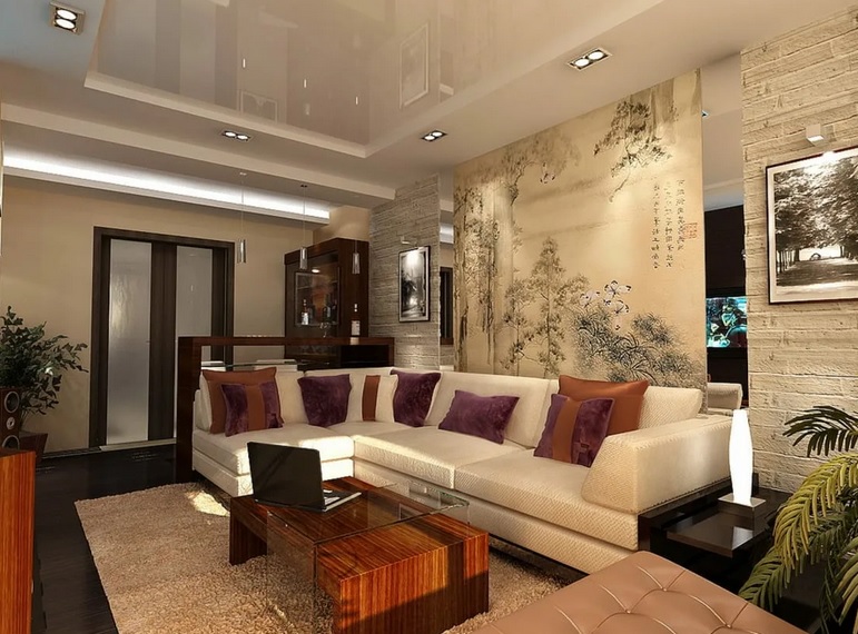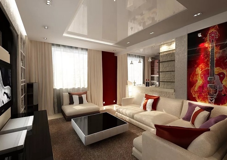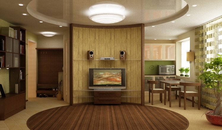 Ma la suddivisione in zone del soffitto sta diventando sempre meno popolare, perché le persone stanno cercando di abbandonare i soffitti a più livelli, rivolgendosi a forme, linee, colori e materiali naturali semplici nella progettazione dell'orizzontale più alto dell'abitazione.