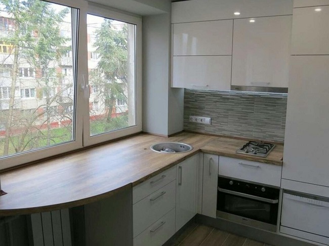 - Puoi anche usare il piano di lavoro del davanzale in diversi modi. Qualcuno lascia tutto così com'è e qualcuno lo sostituisce, preparando un tavolino per il caffè mattutino. A volte gli armadietti sono disposti sotto il davanzale della finestra.