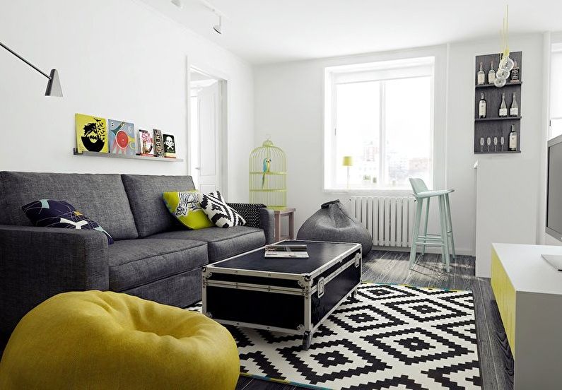 La cosa principale in una stanza del genere sarà l'aria, la libertà: dicono anche che nel minimalismo l'accento interno principale è una persona, le sue abitudini e gusti, il suo umore e la sua comunicazione. Ebbene, se col tempo il minimalismo si annoia, è facile trasformarlo in altri stili, negli stessi scandi, giapponesi, kinfolk, ecc. Probabilmente non dovrai buttare via nulla: lo spazio dovrà essere integrato.