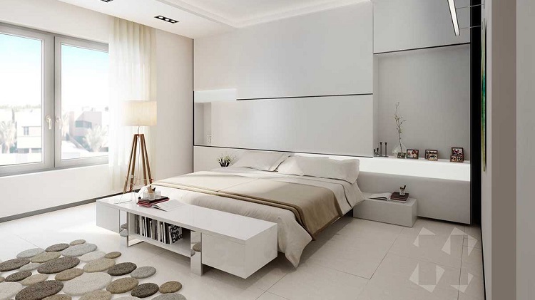 Se è difficile decidere lo stile e non si desidera creare requisiti speciali per la camera da letto, si dovrebbe sempre guardare a un minimalismo chiaro e laconico. Non c'è nulla di superfluo nel minimalismo, anche l'arredamento gioca un ruolo ed è usato in modo molto sobrio.