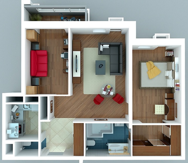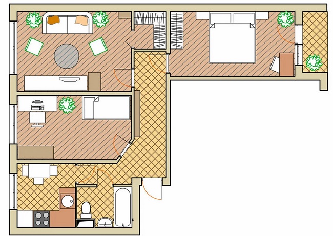 - "Mini-migliorato". La migliore opzione di layout quando tutte e tre le stanze sono adiacenti al corridoio e hanno ingressi separati.