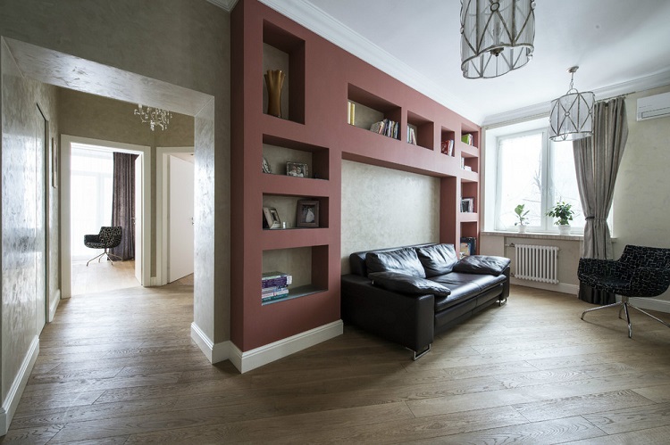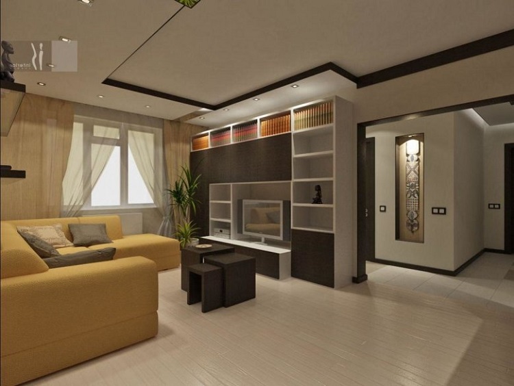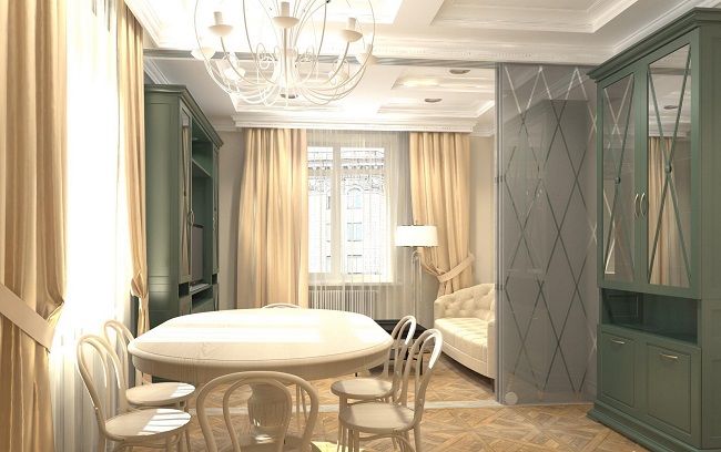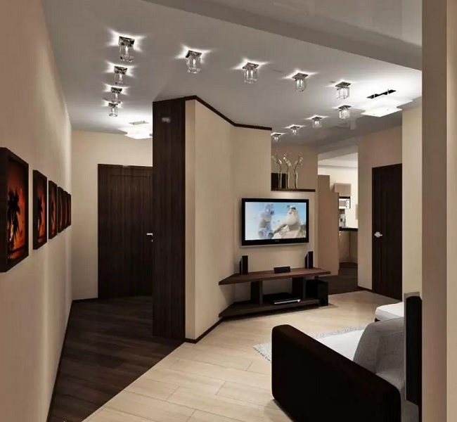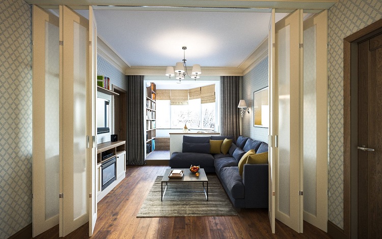 - Dividere il soggiorno in due stanze. Nessun corridoio "soffrirà" di una tale riqualificazione e ci sarà una stanza in più in casa, anche se senza finestra. Ma se questa è una camera da letto, la finestra non è così importante. Inoltre, c'è sempre la possibilità, se necessario, di organizzare una falsa finestra.