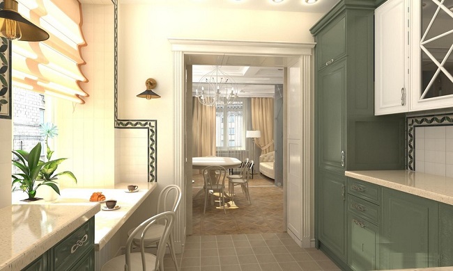 A giudicare dai disegni più diversi di tre rubli, le cucine differiscono in modo significativo nei grandi appartamenti. E se in un'abitazione di tre stanze, ad esempio, in 77 quadrati, la cucina occupa 13 metri, spesso si decide di farne una cucina-soggiorno. Ma non fondendosi con la sala, ma trasferendola in una cucina piuttosto grande.