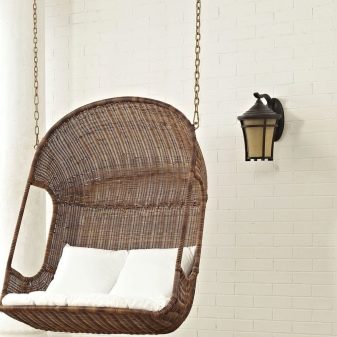 - Sedia sospesa Rotan Bowl. Questa altalena ha un grande sedile a forma di ciotola. Può essere sospeso al soffitto e integrato con cuscini per massimizzare il comfort di utilizzo.