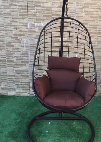 GLOBEX con cuscini. Questo modello ha la forma di una palla. Appartiene al tipo sospeso. Questo design è realizzato insieme a un palo di supporto in metallo, a cui è fissato il prodotto. Il campione stesso è costituito da una base di plastica. Di norma, il modello ha un colore nero e marrone.