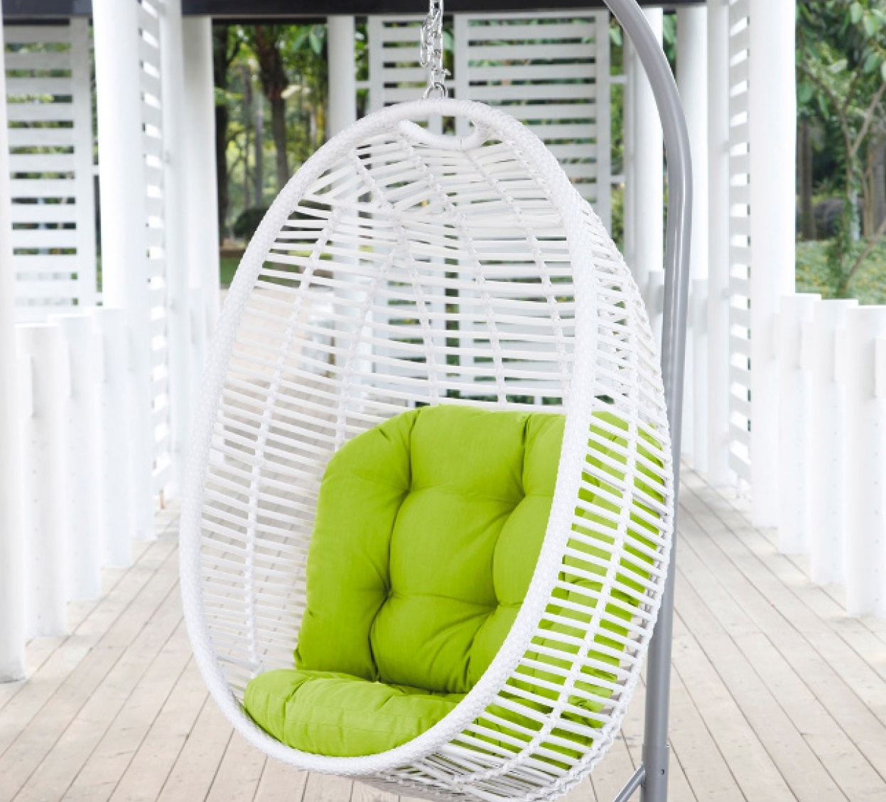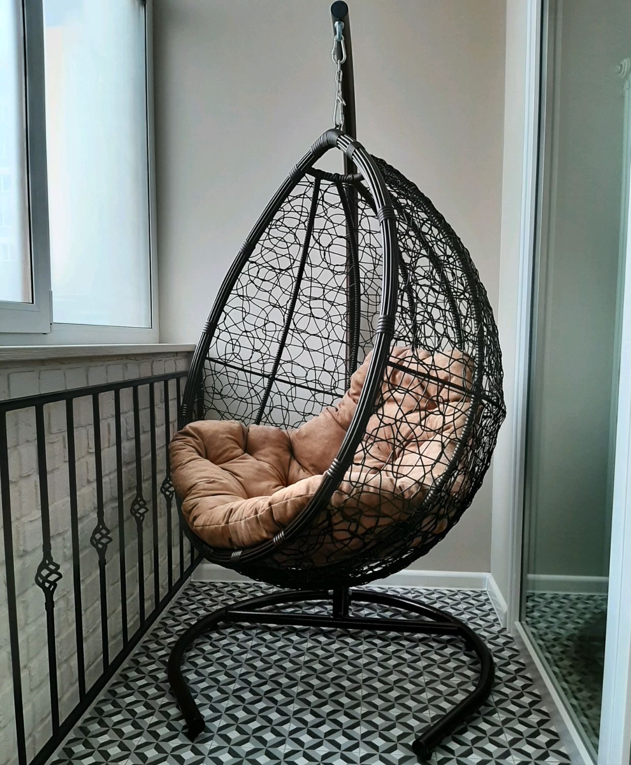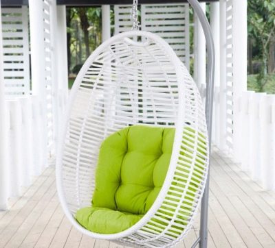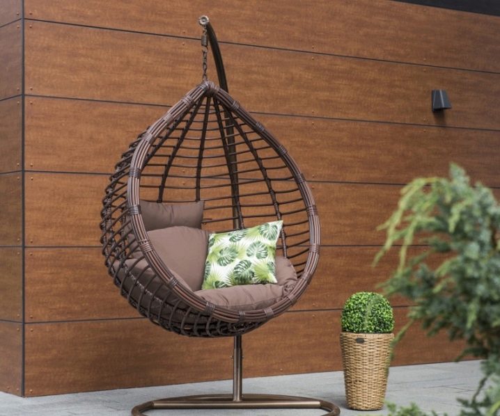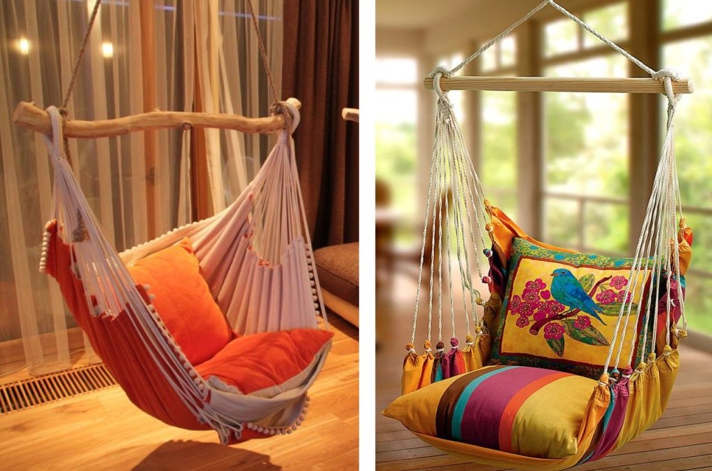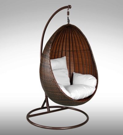 Sedia a bozzolo. Un dettaglio interno così confortevole ed elegante è un tipo di altalena sospesa con una fodera morbida e un design arrotondato. Tali modelli occuperanno molto spazio. Non sono fissati al soffitto, ma ad uno speciale rack robusto.