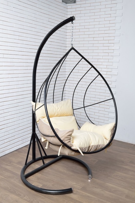 - TEMPIO. Questa altalena sembra un'amaca attaccata a un palo di metallo. Il campione è realizzato in plastica grigia di alta qualità. Viene fornito con un grande e comodo cuscino bianco.