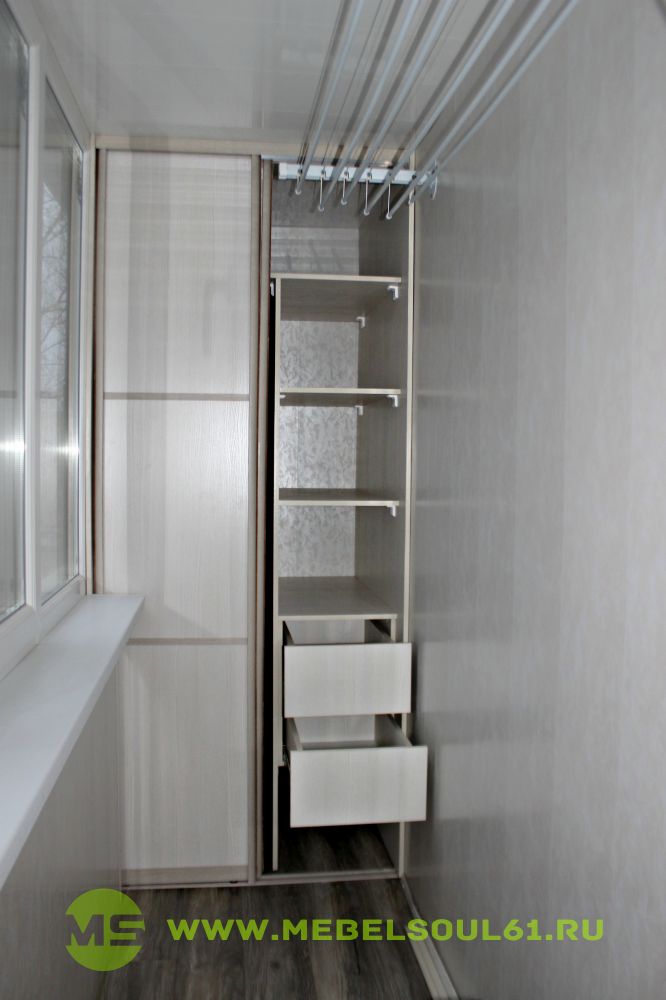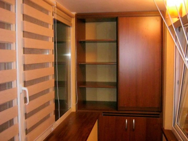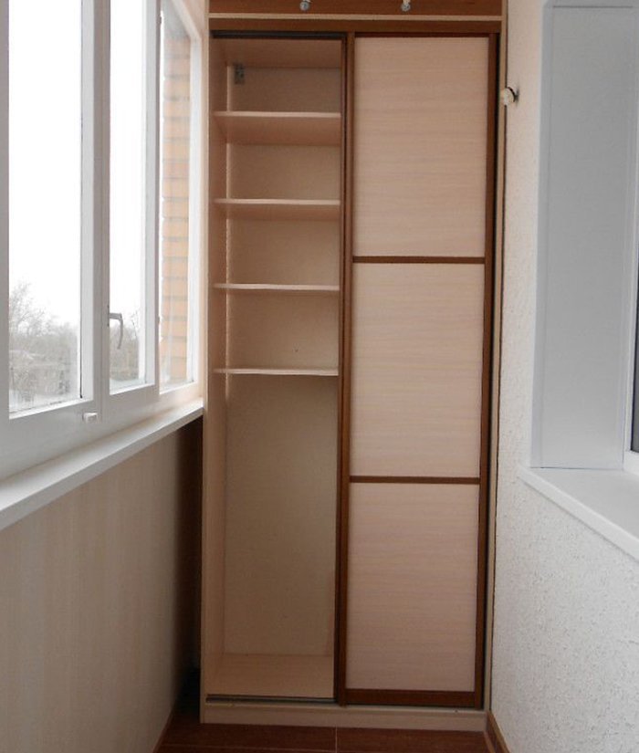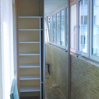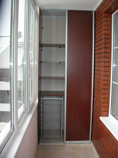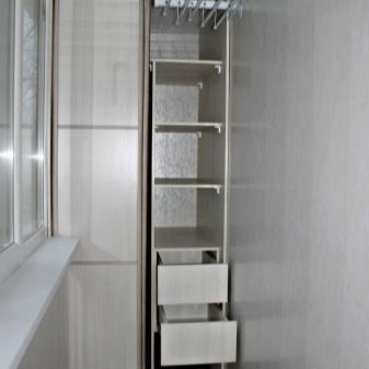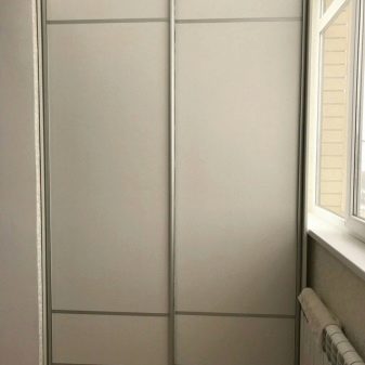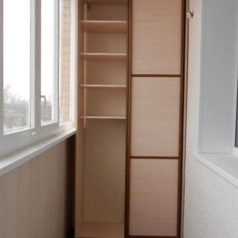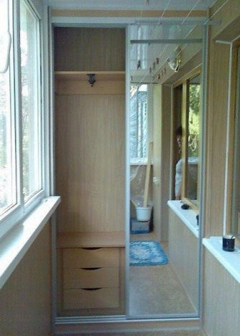 Nei piccoli appartamenti, molto spesso non c'è abbastanza spazio per ospitare tutte le cose dei proprietari, quindi, in tali abitazioni, sono spesso organizzati vari sistemi di stoccaggio nelle stanze del balcone. L'opzione migliore in questo caso può essere un guardaroba, che può ospitare un gran numero di cose.