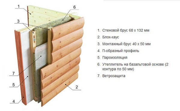 La casa di blocco è una sorta di rivestimento e imita perfettamente un muro di tronchi. L'interno dei pannelli è assolutamente piatto, mentre l'esterno è cilindrico. I loro lati sono dotati di speciali scanalature di fissaggio, maschio e femmina, con l'aiuto delle quali vengono montati i pannelli. La costruzione del blocco prevede anche fessure di ventilazione che alleviano lo stress sotto il peso e il carico meccanico, oltre a fornire un flusso d'aria libero.