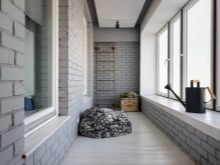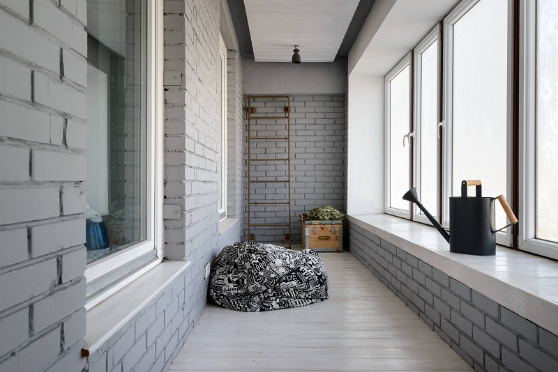 - Grigio... Un colore molto moderno e alla moda, che viene sempre più utilizzato nella progettazione di interni high-tech, minimalismo, loft, scandi. Quando si dipingono le pareti del balcone con questo tono, è importante essere guidati dalla seguente regola: non utilizzare una tonalità troppo scura o fredda per evitare l'associazione con un ripostiglio. È meglio optare per grigio chiaro, fumoso o platino. Assicurati di aggiungere macchie di colore all'interno sotto forma di cuscini, dipinti, vasi di fiori o altri arredi. Limone, rosso, turchese, lavanda, rosa caldo, giallo si combinano idealmente con il grigio. La trama di legno e mattoni in tandem con pareti grigie sarà appropriata nello stile loft.