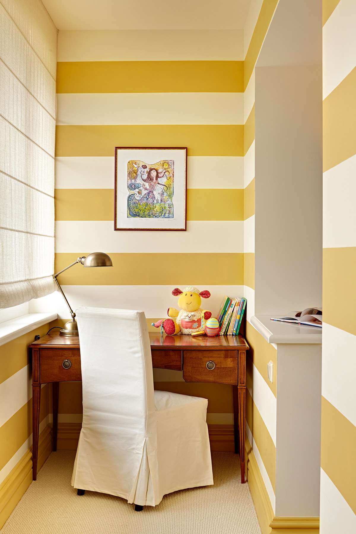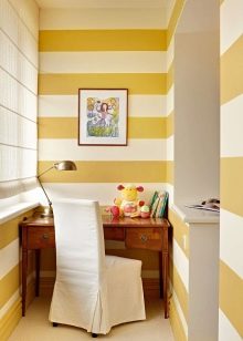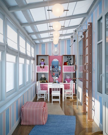 - Se decidi di attrezzare un'area giochi per bambini sulla loggia coibentata, dipingi le pareti in un'ombra luminosa: giallo sole, verde erboso, arancione. Sì, è audace, ma questi toni "succosi" rallegreranno sempre il tuo bambino e porteranno più aria e luce nella stanza.