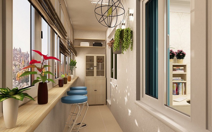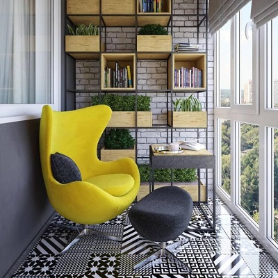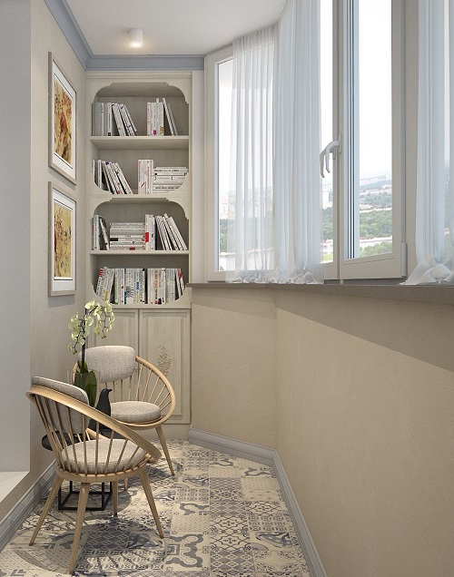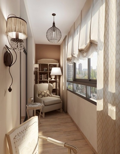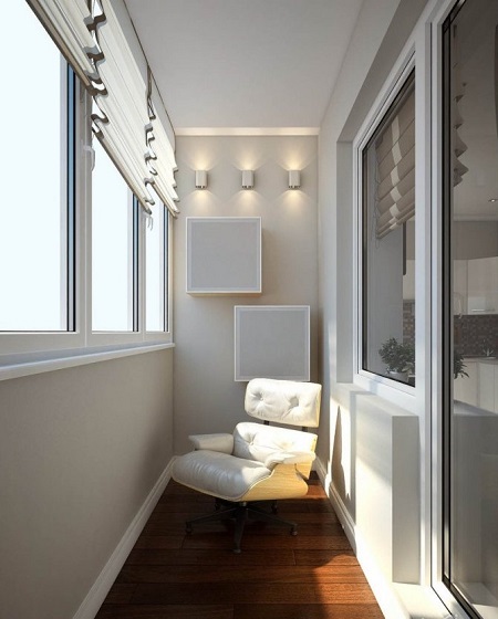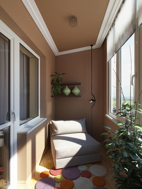 - Considera le tue preferenze personali... Se ti piace questo o quel colore, perché non dipingere le pareti del balcone con esso? L'arredamento può essere selezionato in seguito.