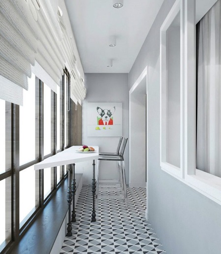 - Colore bianco. Classici senza tempo. Con il suo aiuto, puoi espandere visivamente i confini di una piccola stanza con balcone, aggiungere luce e aria. Le pareti bianche come la neve possono essere decorate con qualsiasi arredamento, qualsiasi mobile sullo sfondo sembrerà organico. E la magnifica capacità del bianco di combinarsi con tutte le sfumature della ruota dei colori darà libero sfogo alla tua immaginazione e amplierà i confini per esperimenti creativi.